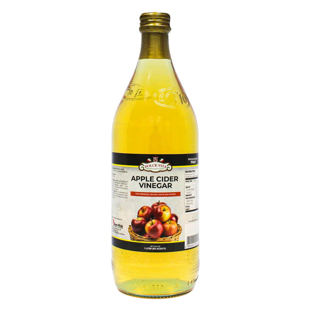 Dolce Vita Apple Cider Vinegar 1L is a premium, all-natural vinegar produced from carefully selected apples using a traditional fermentation process to preserve its natural goodness. Rich in acetic acid, beneficial enzymes, and naturally occurring vitamins, this apple cider vinegar supports digestion, metabolism, detoxification, and overall wellness. Its pure, clean taste and high quality make it suitable for daily consumption as well as a wide range of culinary, beauty, and household uses. Free from preservatives, gluten-free, and vegan-friendly, Dolce Vita Apple Cider Vinegar 1L is designed for families, wellness enthusiasts, and professional kitchens seeking a versatile and reliable natural product.